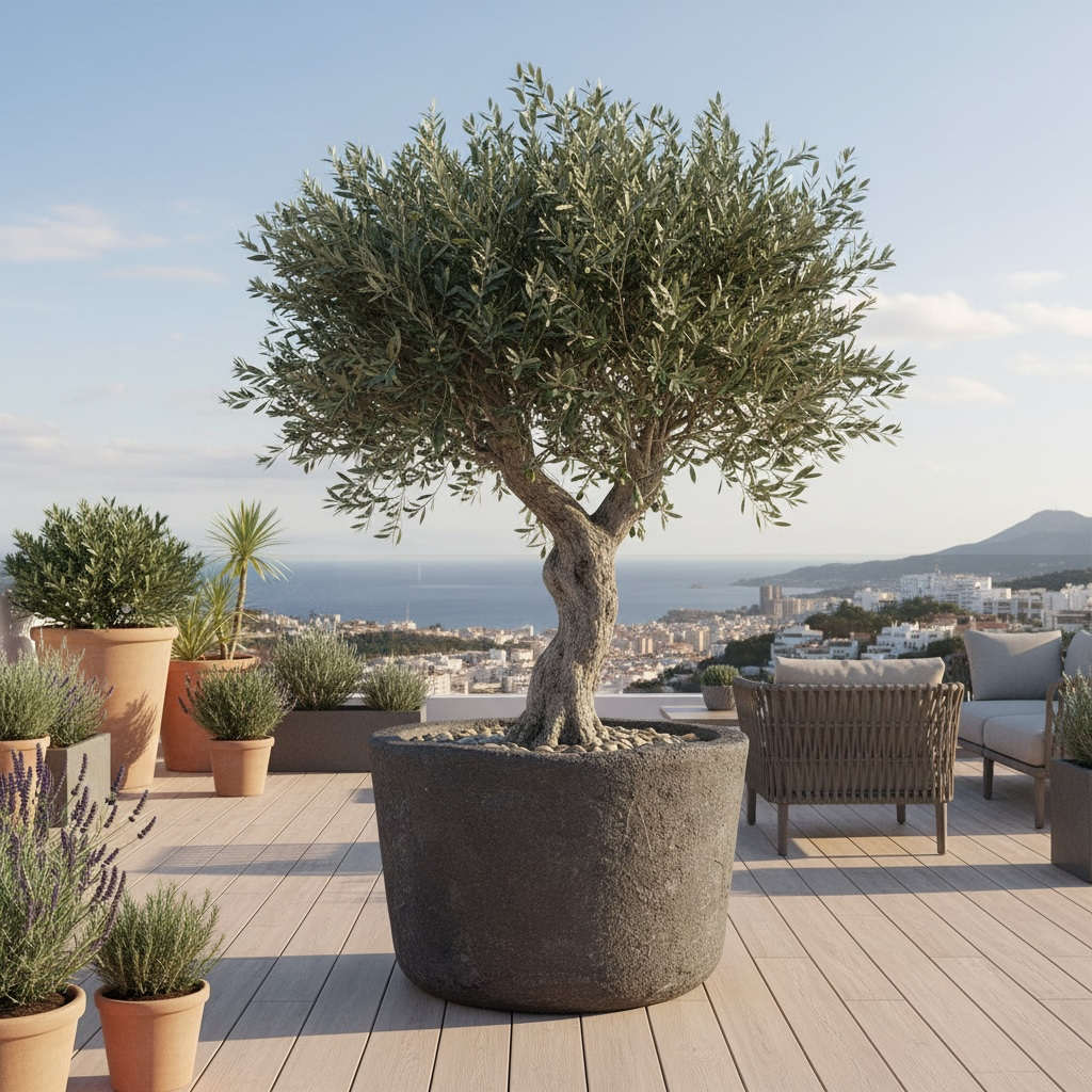 An handcrafted authentic planter inspired by aged Mediterranean vessels. Designed for statement plants, indoors or outdoors, with a strong yet understated presence.